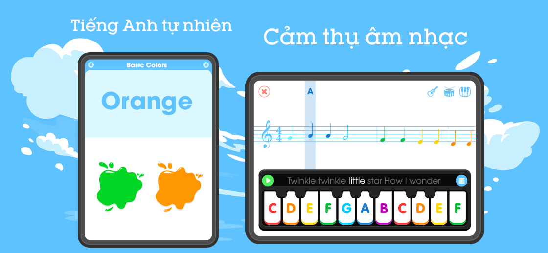 Bé được làm quen với các âm thanh tự nhiên của cuộc sống, các nốt nhạc cơ bản thông qua bài học chủ đề và chế độ luyện tập.